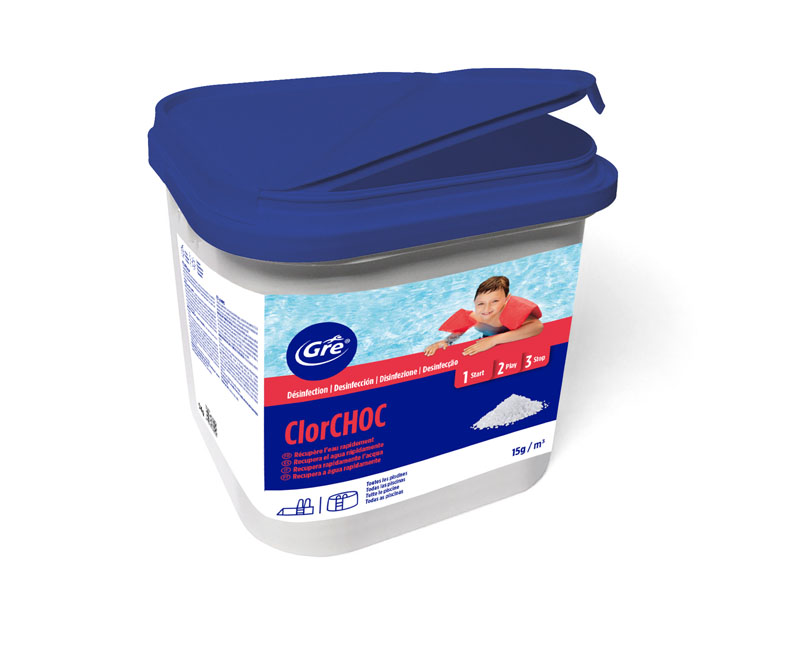 El Cloro es el producto por excelencia para el tratamiento del agua y el cuidado de la piscina y el más utilizado y conocido en el mercado por su precio facilidad y comodidad de uso. Existen dos categorías de cloro: el cloro de choque para realizar un tratamiento de choque y abrir la piscina después de una temporada sin uso y el cloro lento para el mantenimiento diario del agua de la piscina. La gama GRE dispone de varios formatos de cloro: granulado tabletas o líquido para cubrir todas las necesidades de tratamiento de la piscina.