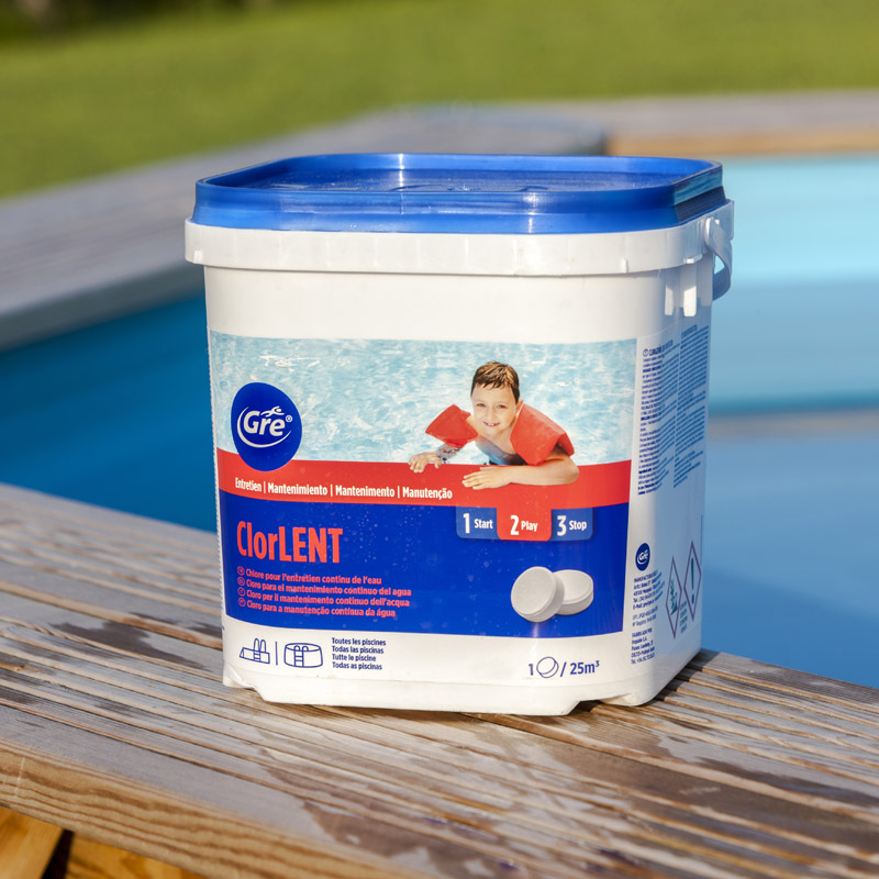 El Cloro es el producto por excelencia para el tratamiento del agua y el cuidado de la piscina y el más utilizado y conocido en el mercado por su precio facilidad y comodidad de uso. Existen dos categorías de cloro: el cloro de choque para realizar un tratamiento de choque y abrir la piscina después de una temporada sin uso y el cloro lento para el mantenimiento diario del agua de la piscina. La gama GRE dispone de varios formatos de cloro: granulado tabletas o líquido para cubrir todas las necesidades de tratamiento de la piscina.