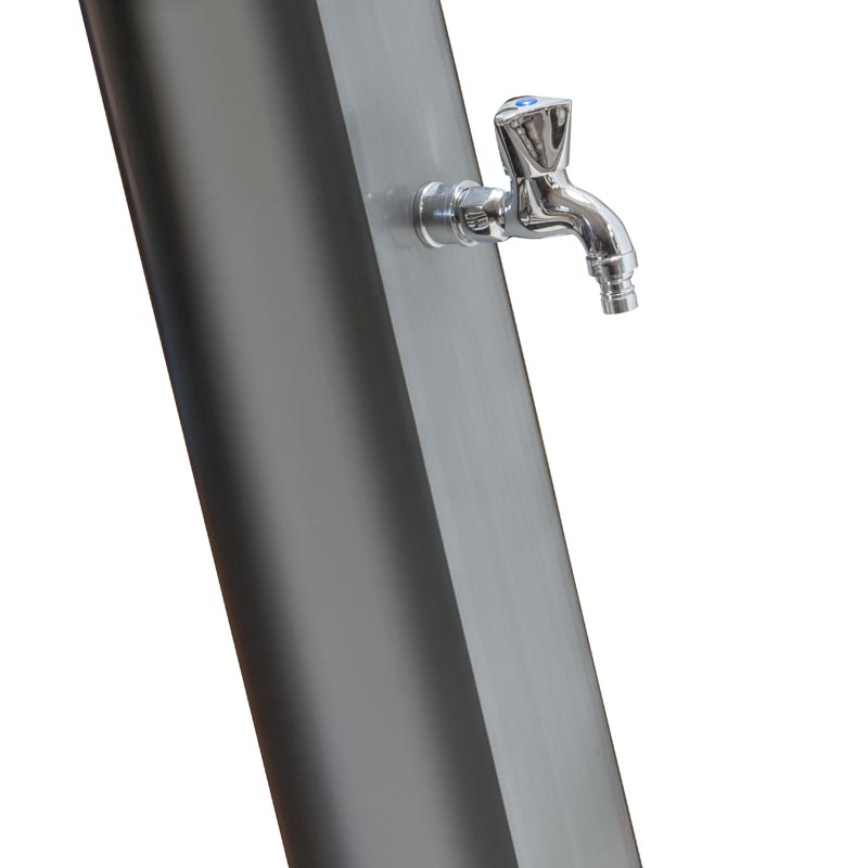 La instalación de una ducha solar en el jardín o en los alrededores de la piscina es muy sencilla y permite disfrutar de agua caliente gratuita y de forma rápida.Las duchas solares calientan el agua gracias a la energía solar y no consumen electricidad. Se instalan en el jardín en la terraza o cerca de la piscina y sólo necesita estar conectada a una manguera con acceso al agua. GRE propone una amplia gama de duchas solares de distintos colores con lavapiés o sin y con un tanques que van desde los 20 litros hasta los 35 litros.
