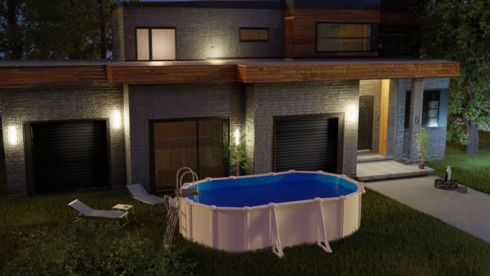 Piscina ovalada de pared de acero con chapa blanca, Medida comercial: 500 x 300 x ↕120 cm, Sistema de sujeción: con postes laterales, Referencia: KIT500ECO, Medida exterior: 527 x 500 x 122 cm, Medida interior: 509 x 300 x 120 cm, Volumen de agua: 14,55 m³, Liner de PVC azul con tratamiento anti-UV – espesor del liner: 30/100, Depuradora de arena con un caudal de 4 m³/h. Incluye la arena sílex (±20 kg). Nuestros Nuestros filtros están conformes a la norma Europea, Escalera de seguridad tipo tijera 2×3 peldaños. Permite desmontar los peldaños de un lado para impedir el acceso de los niños a la piscina y prevenir accidentes. Conforme a la norma Europea, Estructura del vaso y perfilería de acero galvanizado, Protectores de inyección para las uniones entre los perfiles horizontales, Incluye conjunto de skimmer, Incluye mangueras de conexión, La estructura metálica cuenta con una garantía de 5 años, Resto de componentes tiene una garantía de 2 años (Salvo ampliación de garantía dependiendo del país), Tiempo de instalación de piscinas: entre 2-3 personas una duración de 6 horas, Piscina sobresuelo, Solera de hormigón opcional