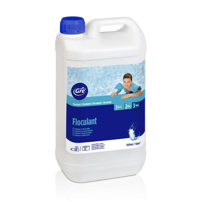 El floculante se utiliza para clarificar el agua y eliminar las materias en suspensión. Su objetivo es eliminar el agua turbia de la piscina ya que la floculación recupera el agua cristalina. Existen dos tipos de floculación: la que se realiza dentro del filtro y la floculación dentro del vaso. GRE propone una amplia gama de floculante para cualquier uso de piscina y para ambos tipos de floculación.