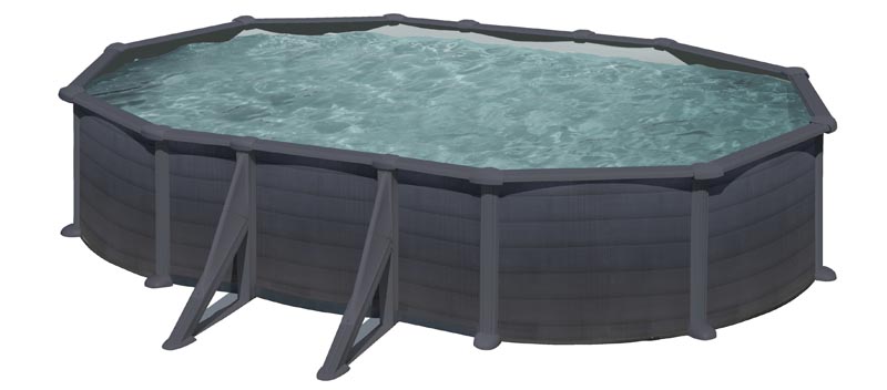 Piscina ovalada de pared de acero con decoración de grafito, Medida comercial: 610 x 375 x ↕132 cm, Sistema de sujeción: con postes laterales, Referencia: KITPROV618GF, Medida exterior: 634 x 575 x 132 cm, Medida interior: 610 x 375 x 130 cm, Volumen de agua: 23,28 m³, Liner de PVC gris con tratamiento anti-UV – Espesor del liner: 40/100, Depuradora de arena con un caudal de 6 m³/h. Incluye la arena sílex (±40 kg). Nuestros filtros están conformes a la norma Europea, Escalera de seguridad con plataforma y 6 peldaños (3×2). Permite desmontar los peldaños de un lado para impedir el acceso de los niños a la piscina y prevenir accidentes. Conforme a la norma Europea, Tapiz protector de polietileno, Estructura del vaso y perfilería de acero galvanizado, Protectores de inyección para las uniones entre los perfiles horizontales, Incluye conjunto de skimmer, Incluye mangueras de conexión, La estructura metálica cuenta con una garantía de 5 años, Resto de componentes tiene una garantía de 2 años (Salvo ampliación de garantía dependiendo del país), Tiempo de instalación de piscinas: entre 2-3 personas una duración de 7 horas, Piscina sobresuelo, Solera de hormigón opcional