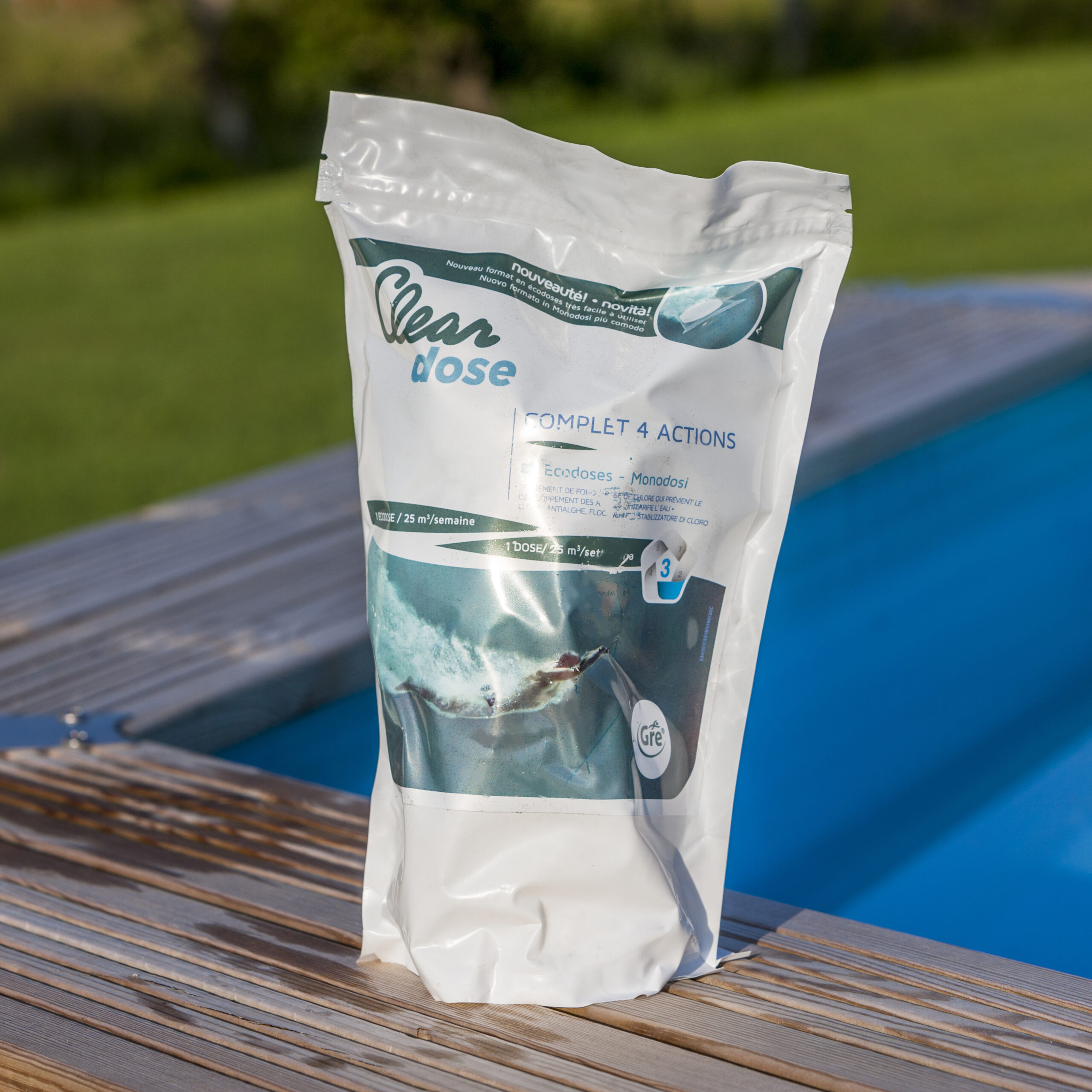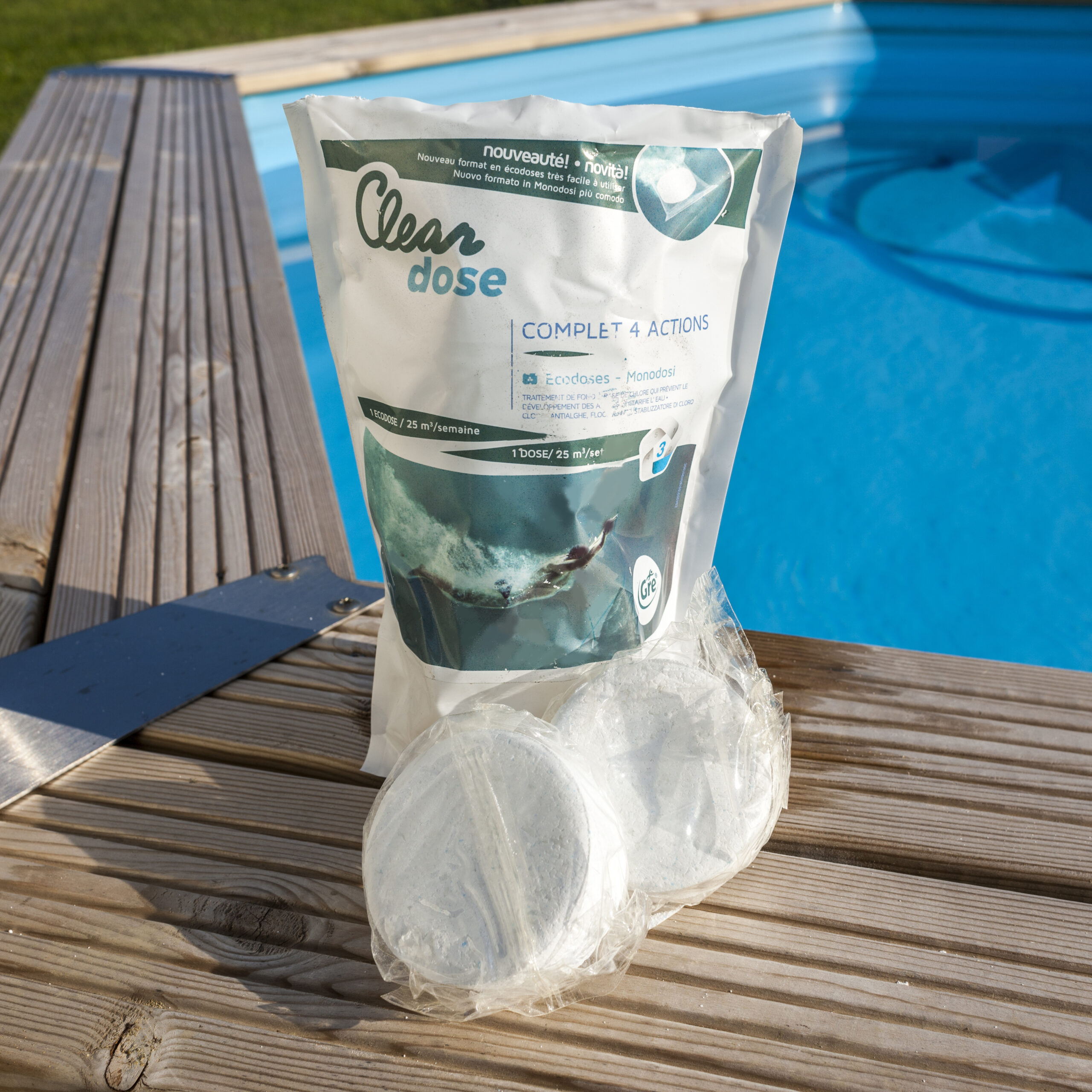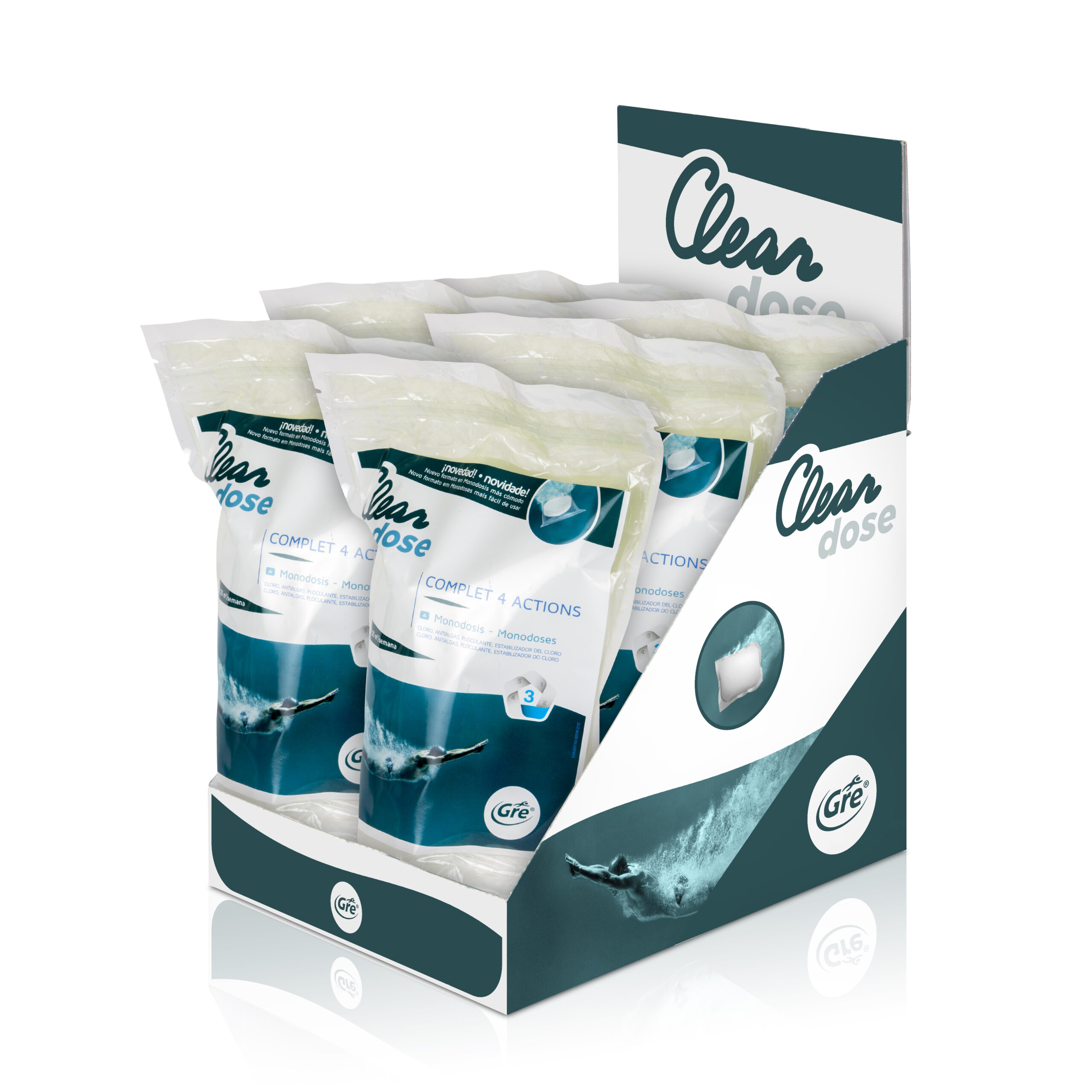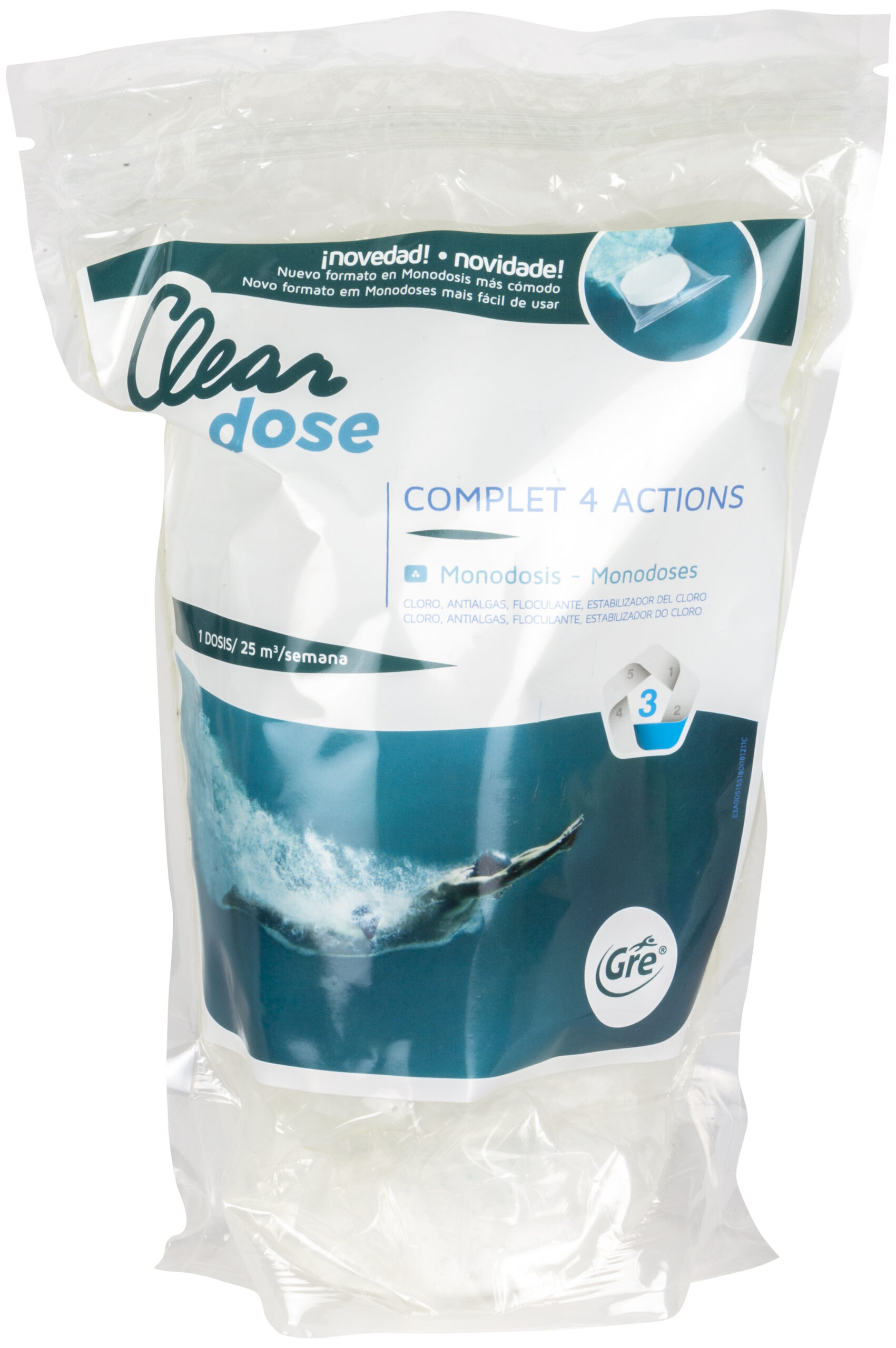 ¡Nueva gama en formato dosificado! La gama de productos químicos en monodosis es un formato dosificado listo para usar para que ahorres tiempo en el tratamiento del agua. Este formato facilita la tarea del cuidado del agua de la piscina ya que son dosis exactas para una piscina mediana o pequeña. Olvídate de medir la dosis utilizar más producto del necesario y ahorra dinero con este formato de químico. La gran ventaja de este producto es que su formato no requiere contacto directo con el producto evitando así posibles riesgos.