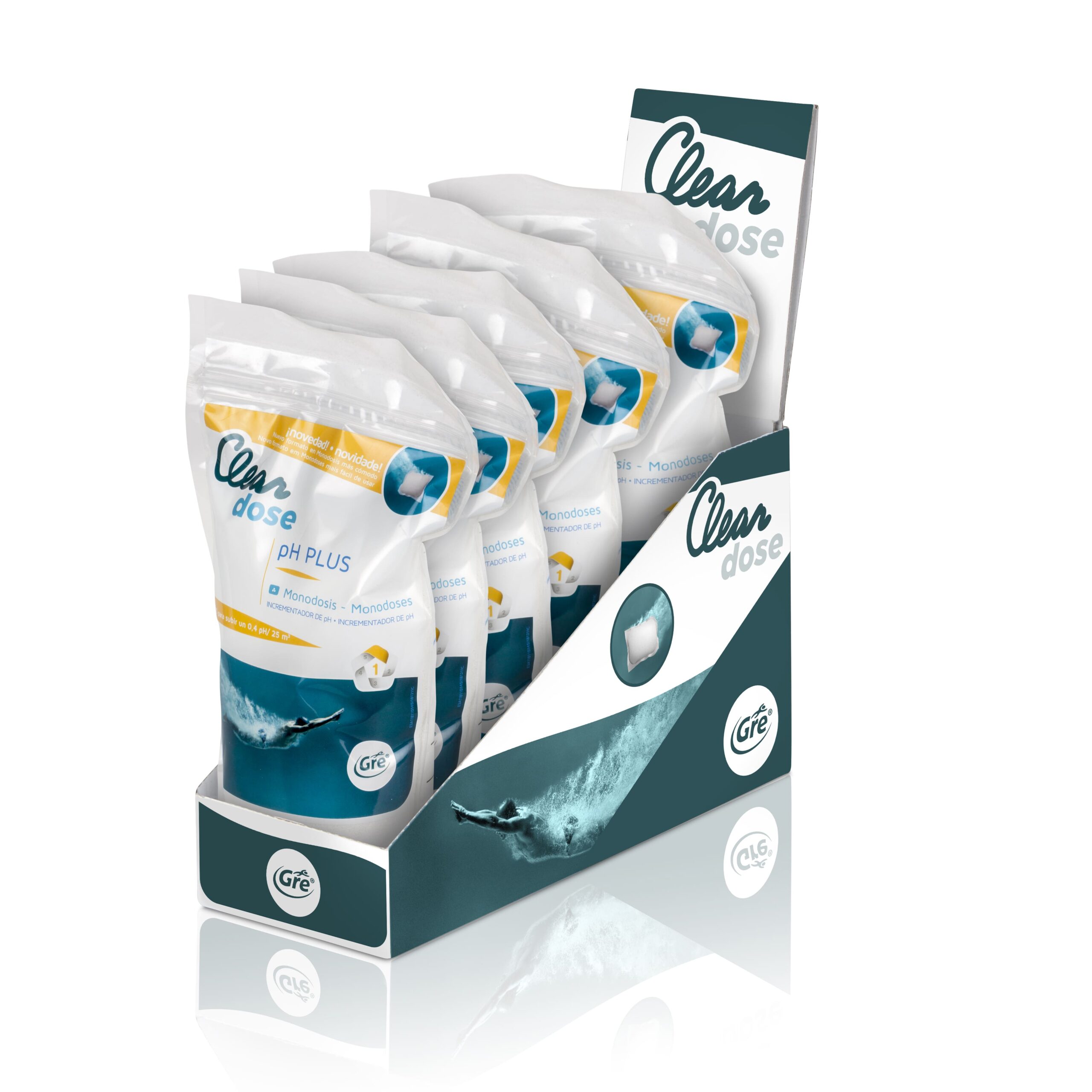 ¡Nueva gama en formato dosificado! La gama de productos químicos en monodosis es un formato dosificado listo para usar para que ahorres tiempo en el tratamiento del agua. Este formato facilita la tarea del cuidado del agua de la piscina ya que son dosis exactas para una piscina mediana o pequeña. Olvídate de medir la dosis utilizar más producto del necesario y ahorra dinero con este formato de químico. La gran ventaja de este producto es que su formato no requiere contacto directo con el producto evitando así posibles riesgos.